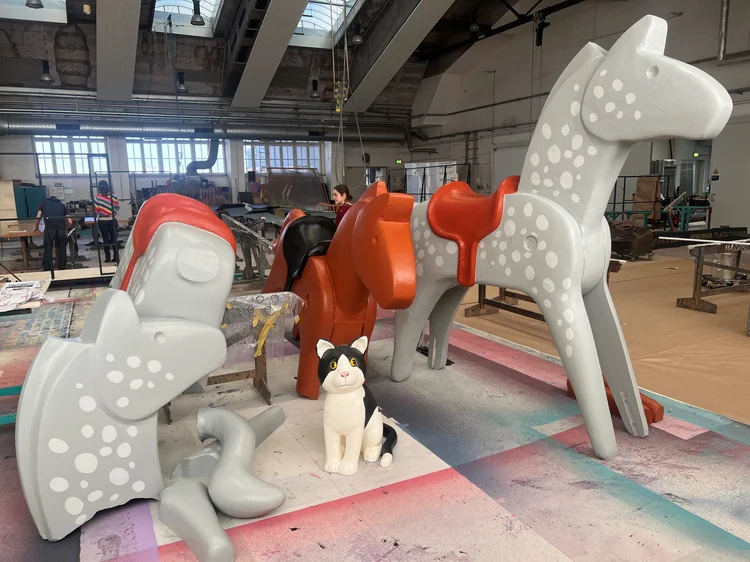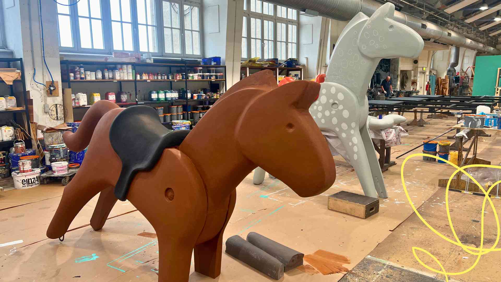 SH Eigentlich war unsere gesamte Abteilung involviert. Ich habe das Styropor geschnitzt, aus dem die Pferde bestehen. Danach wurde es beschichtet, kaschiert und bemalt. Ein Schlosser und ein Rüstmeister haben Metallbestandteile und eine Tritthilfe angefertigt, damit die Darsteller aufsteigen können. Zudem hat ein Tischler die Unterkonstruktion aus Holz gefertigt. Es waren also viele Hände beteiligt.