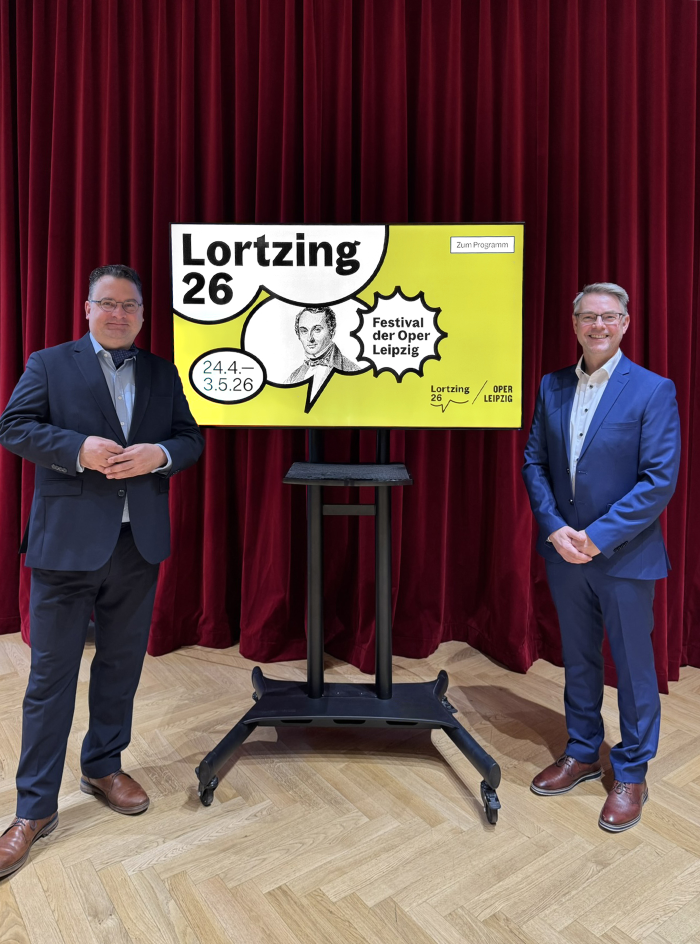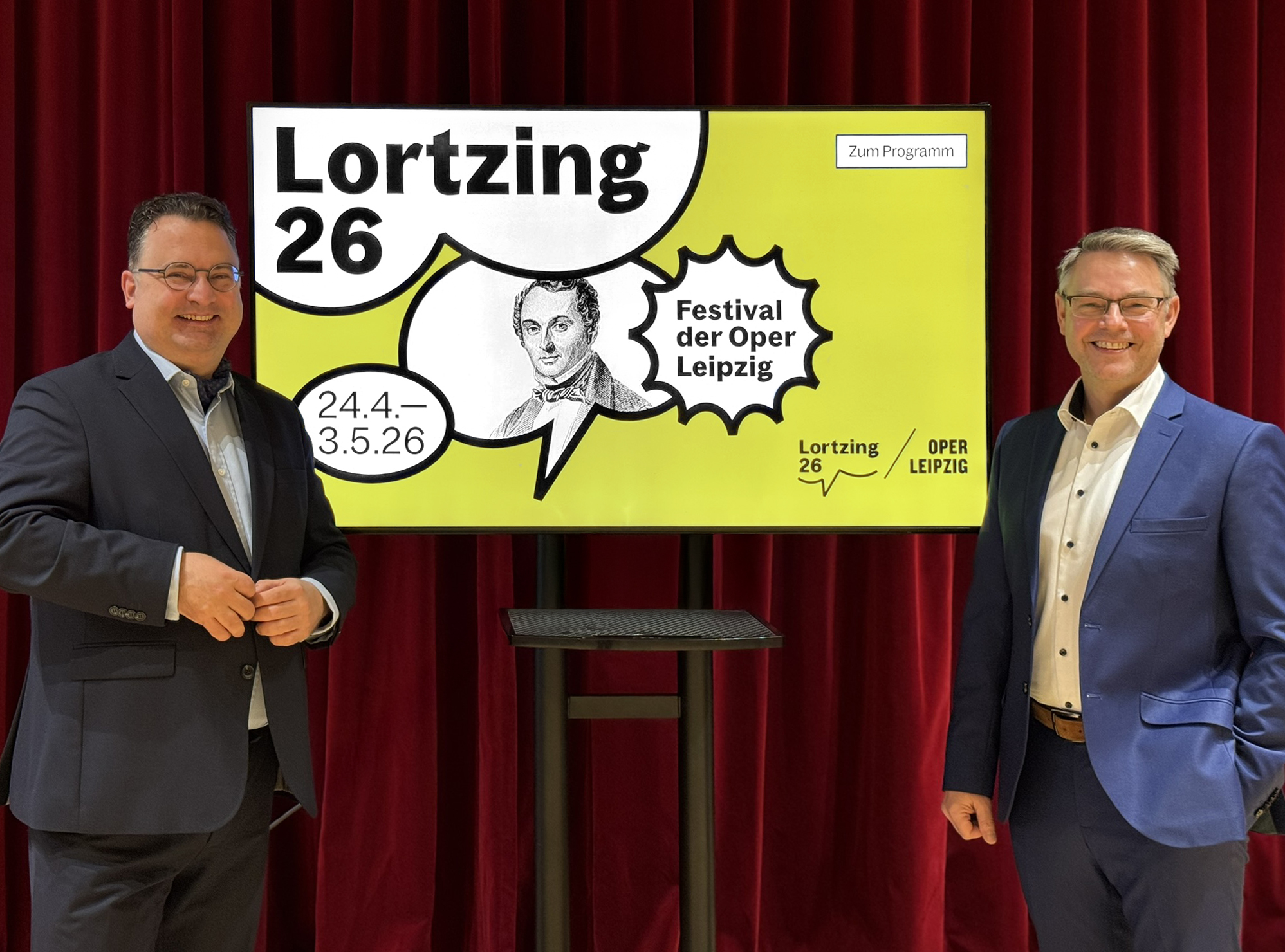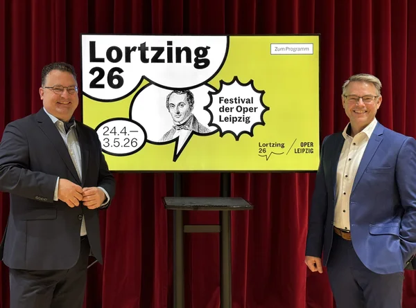 Tobias Wolff, Intendant der Oper Leipzig (li), zusammen mit Torsten Rose, Direktor der Musikalischen Komödie - Startschuss zum Vorverkauf
