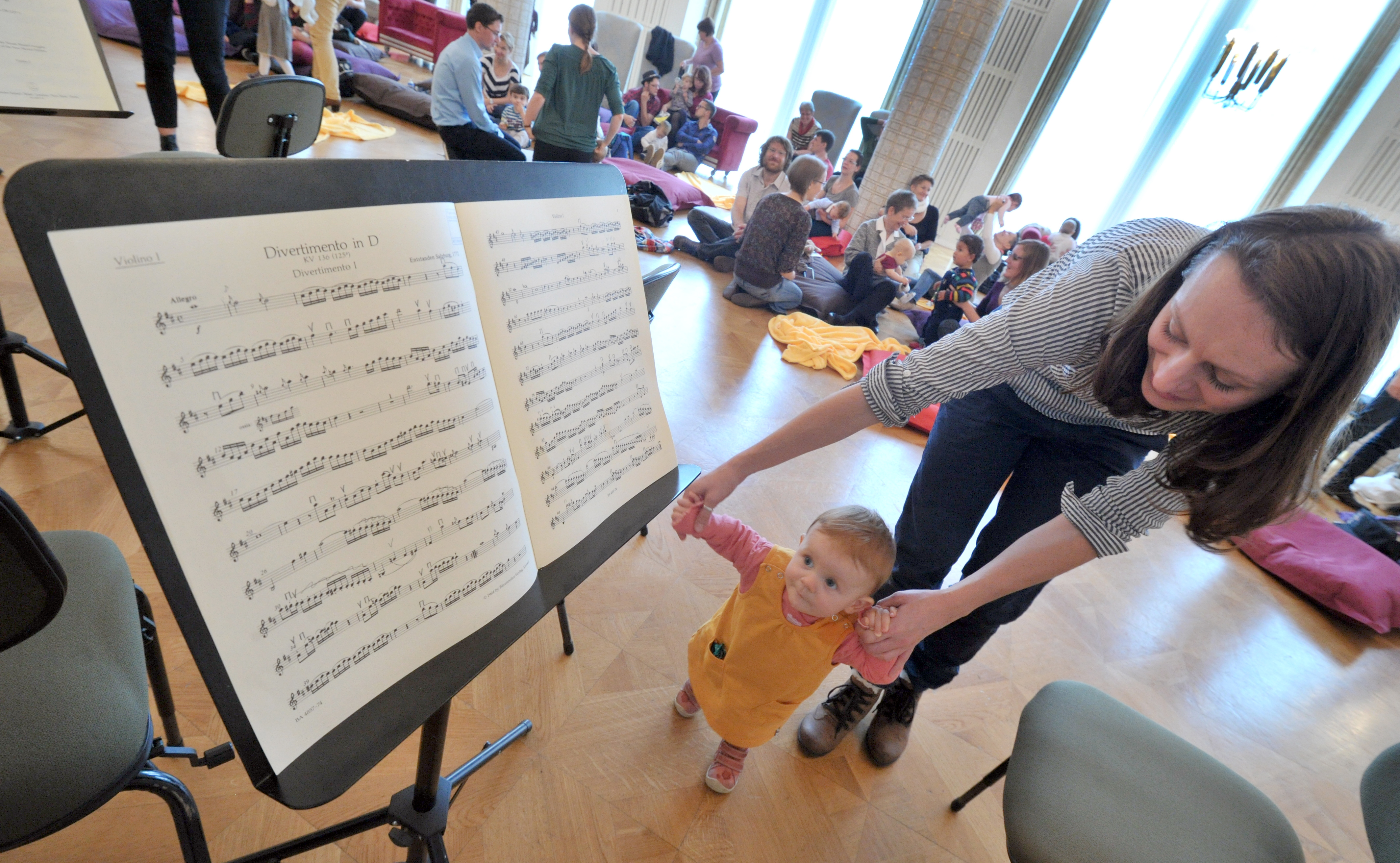 Seit vielen Jahren schon bietet die Oper Leipzig jungen Eltern, Schwangeren, Großeltern, Paten, Babysitter die Möglichkeit, mit Babys und Kleinkindern klassische Musik zu genießen. Anders als im Konzertsaal gibt es hier keine Stühle, sondern Sitzsäcke, Kissen und Decken, auf denen die Babys krabbeln, spielen, tanzen, quäken und sich ganz babygemäß verhalten können.
