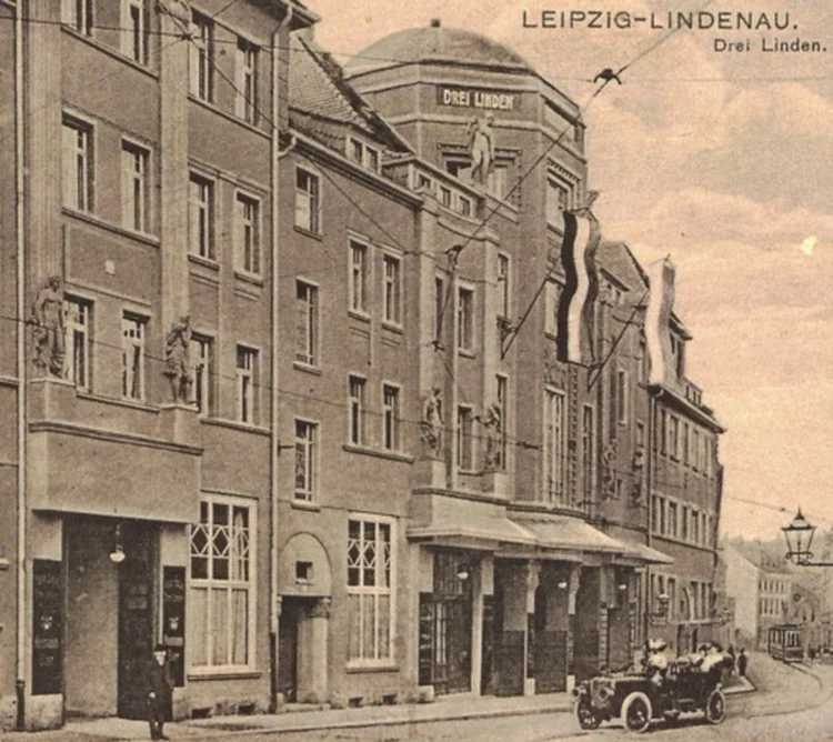 Als 1912 der Gebäudekomplex »Drei Linden« als Vergnügungs- und Wohnungsbau errichtet wurde, zierten acht beeindruckende Figuren im griechischen Stil die Fassade der heutigen Musikalischen Komödie. Als einziges Leipziger Theater überstand das Gebäude inklusive der Figuren den Zweiten Weltkrieg unbeschadet. 1952 fanden jedoch Umbaumaßnahmen statt, in deren Rahmen alle Figuren entfernt wurden und verloren gingen.