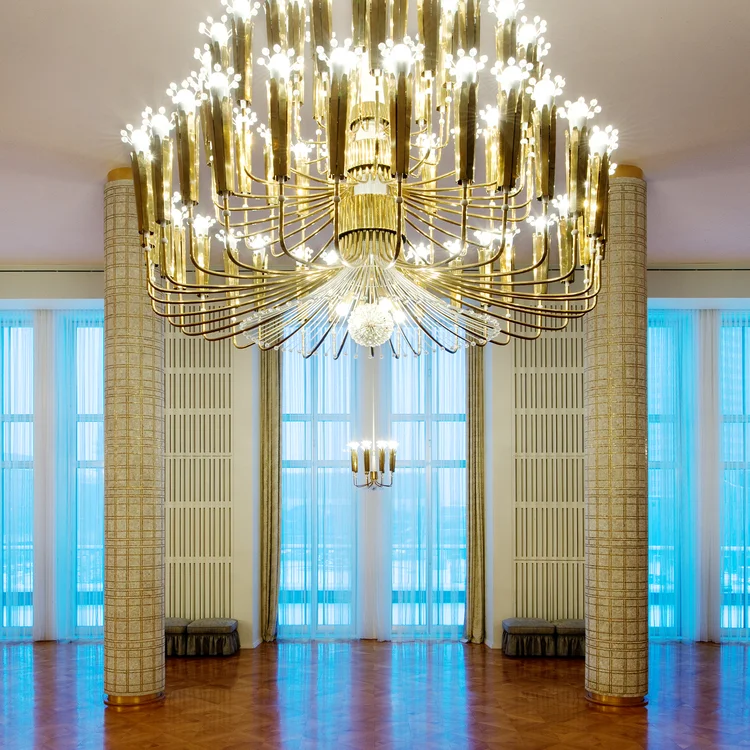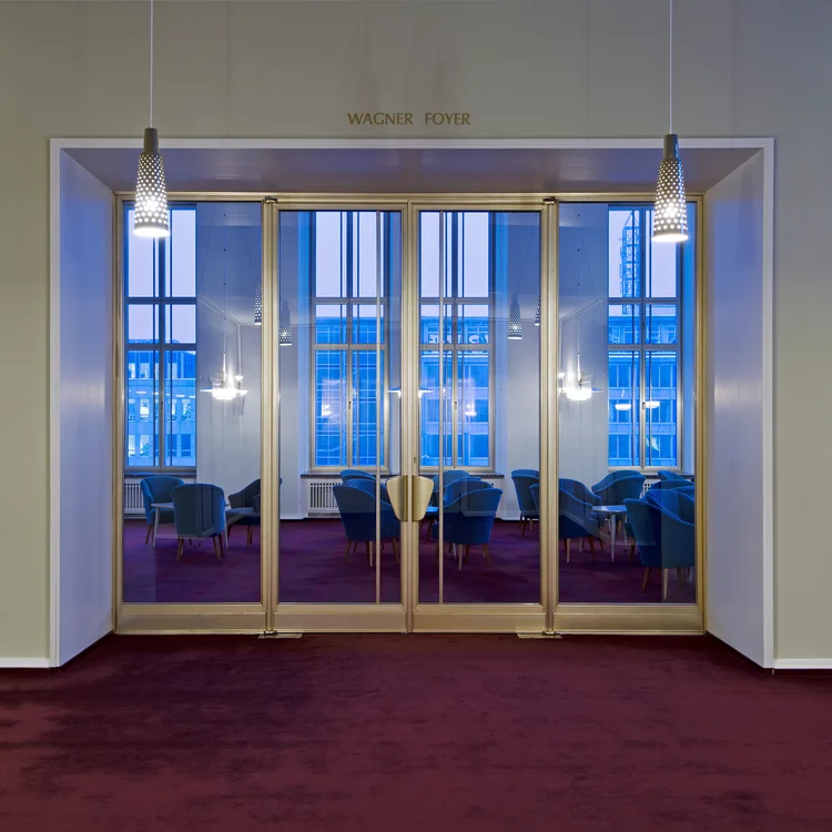 Today's opera house, situated on the Augustusplatz, opened in 1960 as the only new opera building in the GDR, is a captivating, cohesive work of art in the architecture and interior design of the 1950s. The trapezoidal auditorium in the form of a single-aisle theatre offers a total of 1273 seats. It impresses with its excellent acoustics and outstanding views from every seat.