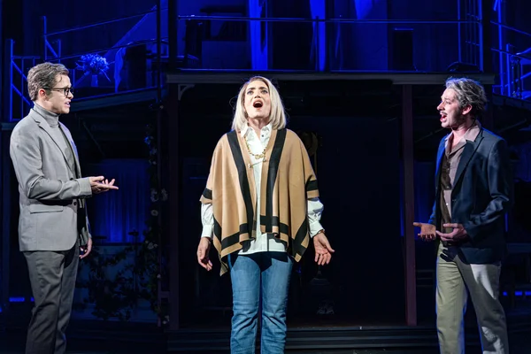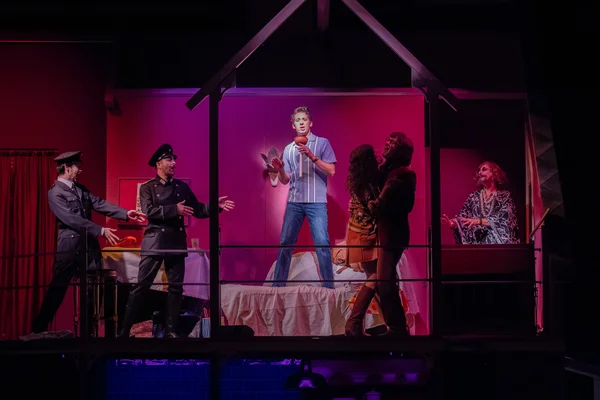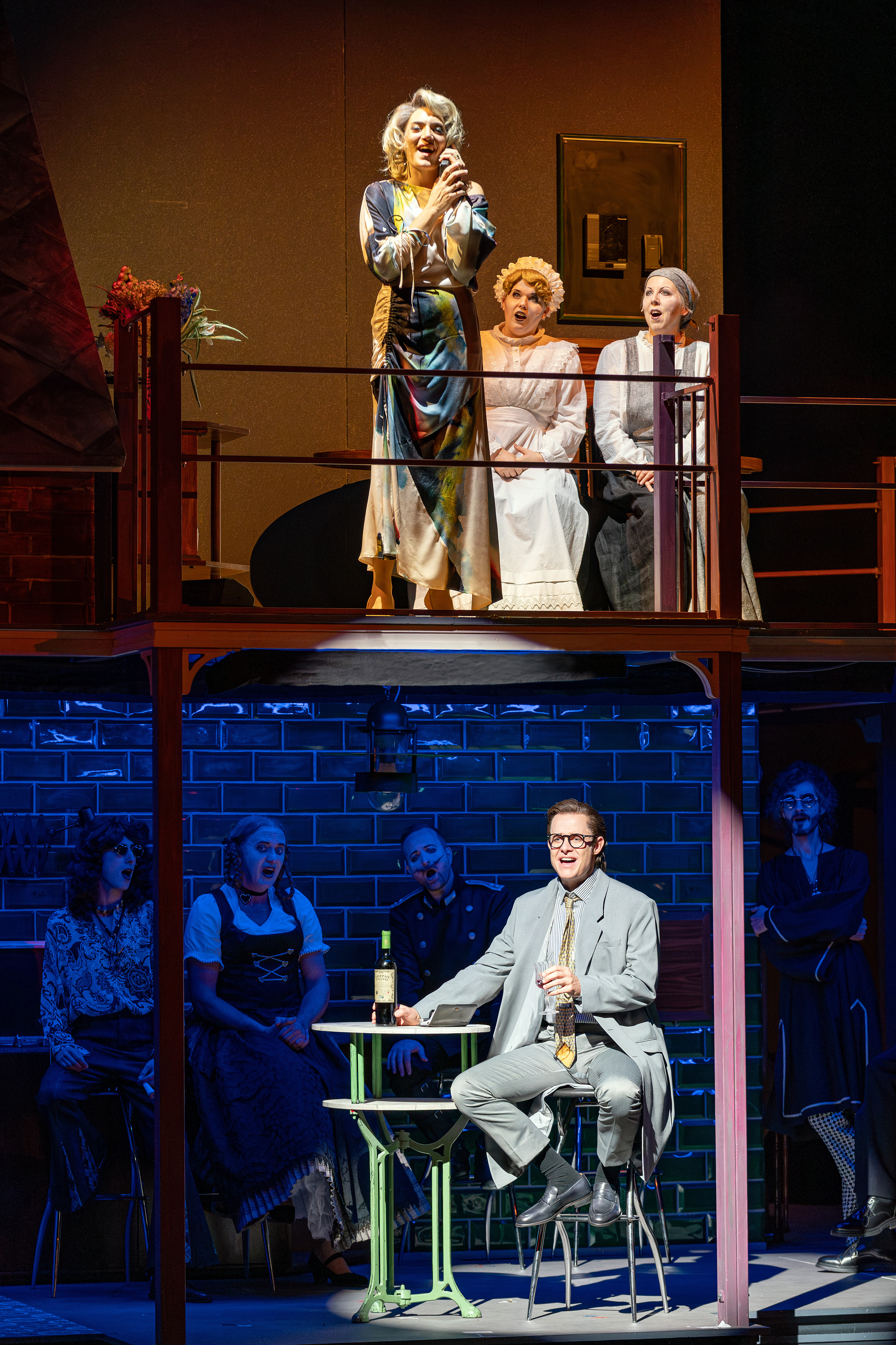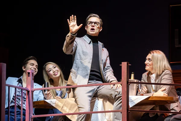 Matteo (Thomas Hohler) , vorne rechts Hanna (Roberta Valentini), Rolf (Christof Messner), und Chor der Musikalischen Komödie