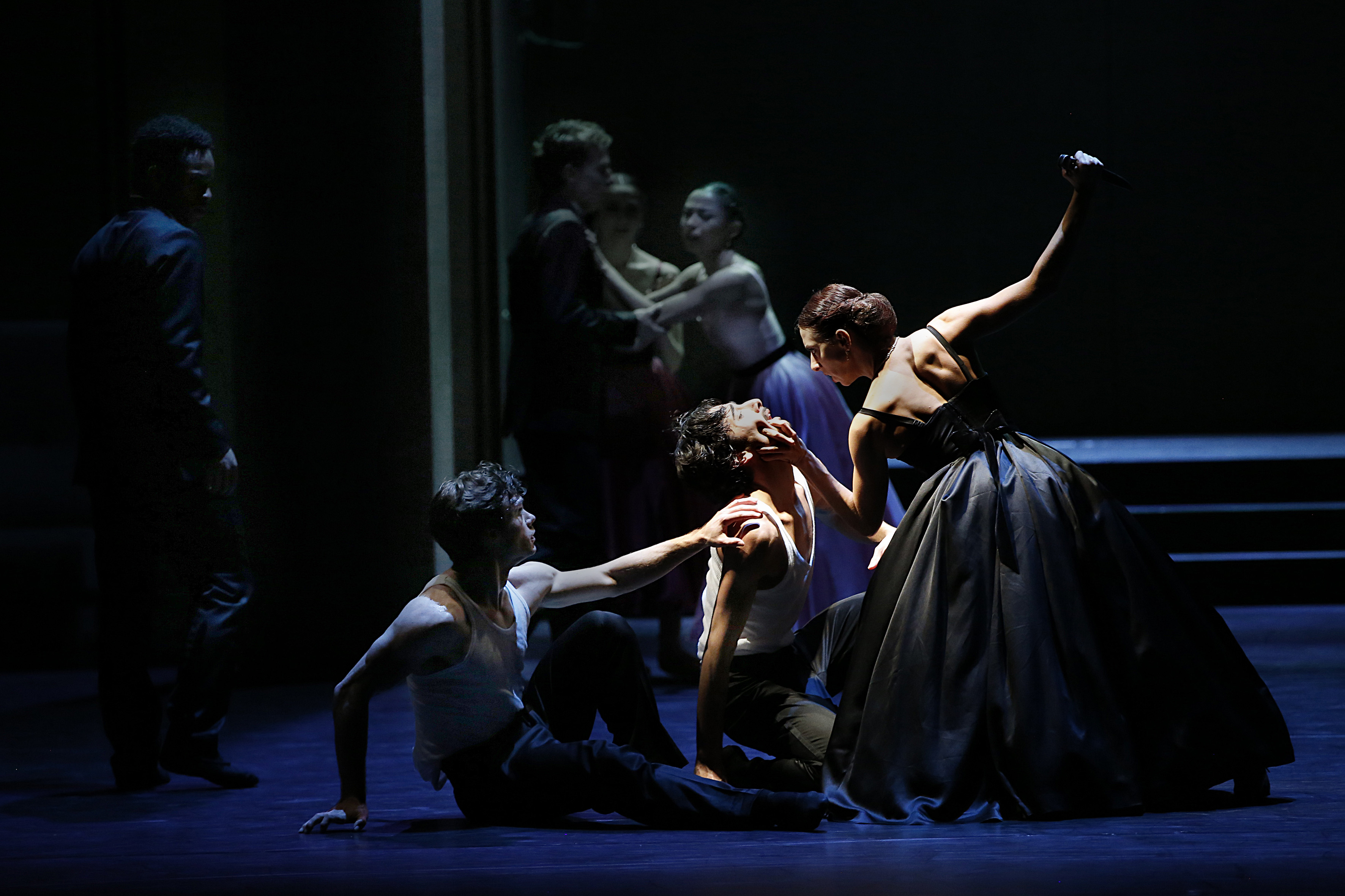 Ester Ferrini (Lady Capulet, left), Soojeong Choi (Julia) and Leipzig Ballet