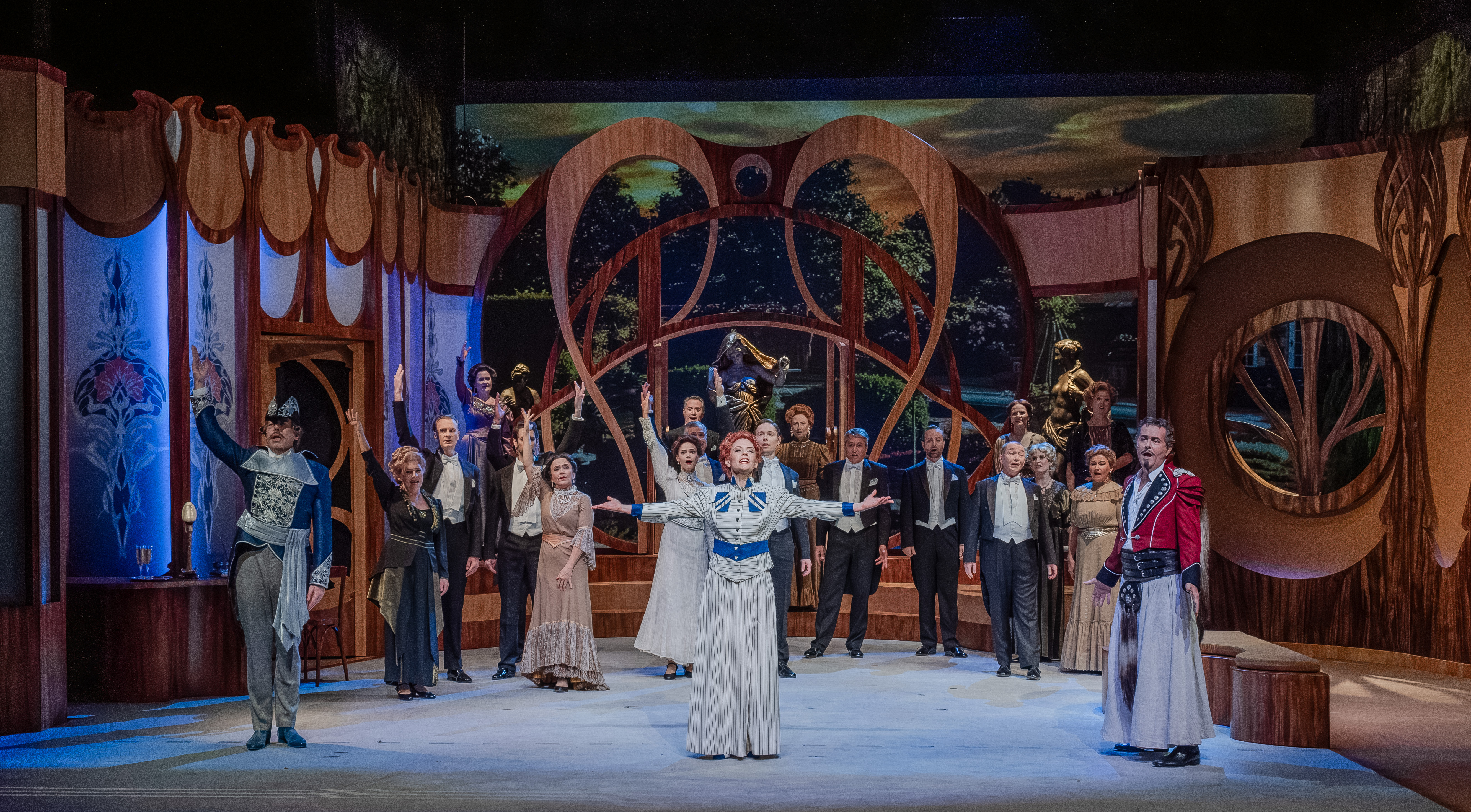 In order to protect herself from the onslaught of potential marriage candidates, beautiful Countess Mariza fakes an engagement with Zsupán, a landowner from Warasdin, magnanimously inviting all of local newspapers to their engagement party. But when Zsupán suddenly appears in the flesh before Mariza, the chaos is complete. With Gräfin Mariza, Kálmán managed to repeat the recipe for success he first used for Die Csárdásfürstin.